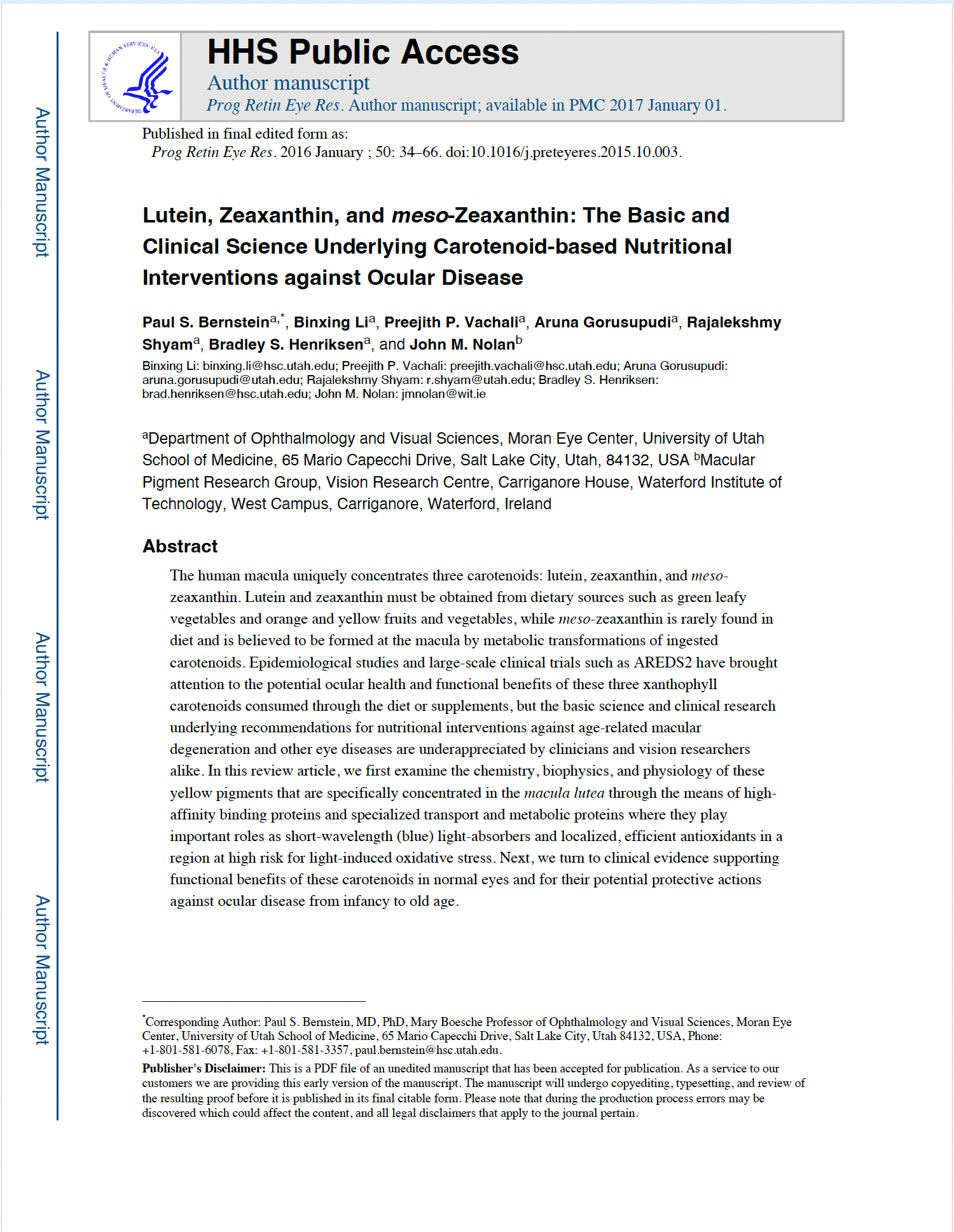 Lutein, Zeaxanthin, and meso-Zeaxanthin: The Basic and Clinical Science Underlying Carotenoid-based Nutritional Interventions against Ocular Disease
